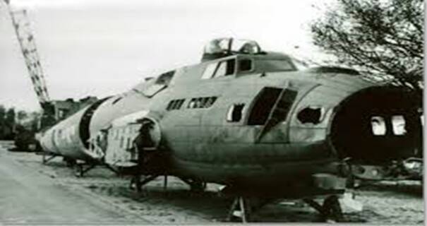 Staartstuk van een neergekomen Amerikaanse bommenwerper Wrak van een Amerikaanse bommenwerper