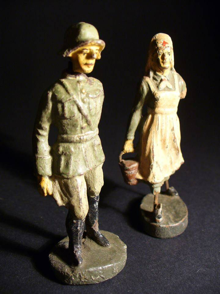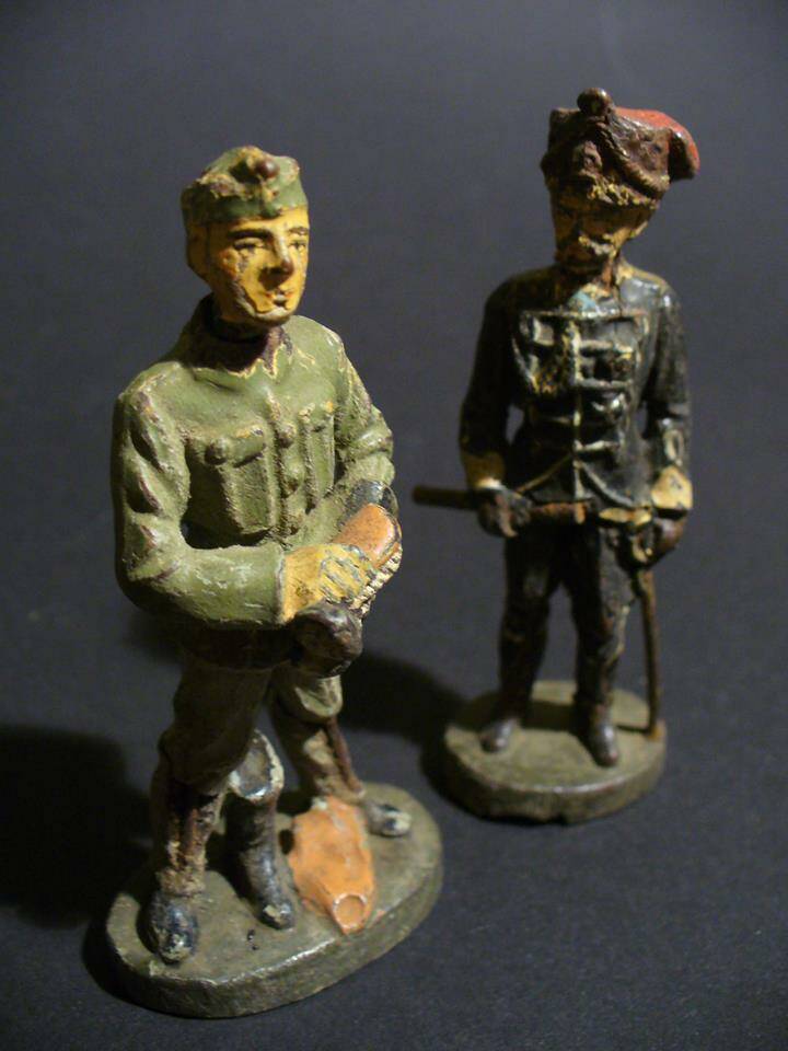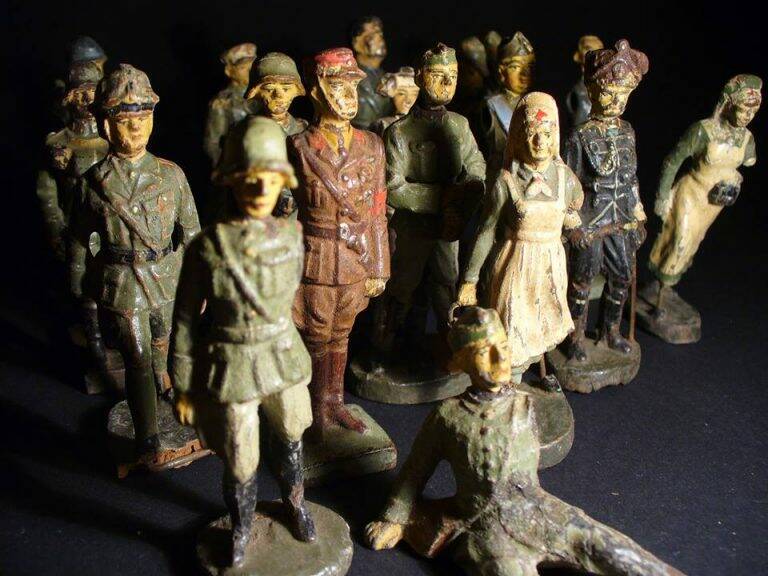 Speelgoedsoldaatjes… wie heeft ze niet gehad? Dat de plastic varianten, die de meeste van ons kennen, ook voorouders hebben gehad die nog voor de Tweede Wereldoorlog zijn ontwikkeld weten de meeste van ons waarschijnlijk niet. Elastolin. Dat is de naam van de in 1904 door de firma O&M (Otto en Max) Hausser geproduceerde miniatuur figuren.De eerste figuren waren hoofdzakelijk dierenfiguren van ca 10 -14 cm groot. De eerste 7 cm figuren verschenen… pas in 1912 en waren nog simpel. Dat waren historische of hedendaagse figuren/soldaatjes met vele nationaliteiten en een niet aflatende stroom dierenfiguren, huisdieren en dierentuindieren. De figuren werden om een draadframe gevormd/geperst van een materiaal dat hoofdzakelijk bestond uit zaagmeel, lijnzaad en lijm (composiet) en daarna met de hand beschilderd.