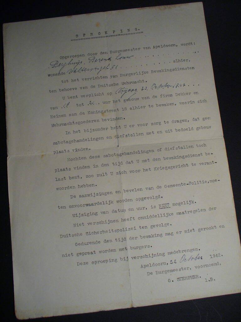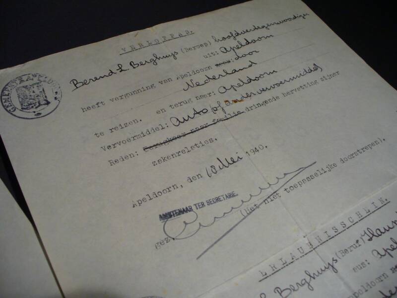 Wij benaderd door de dochter van de heer Berend Berghuijs. Ze ging verhuizen en had met opruimen wat spullen van haar vader uit de oorlog gevonden. Of we interesse hadden? Nou en of! Wat we toen nog niet wisten is dat we door haar schenking een heel goed beeld zouden krijgen van hoe men in de oorlog om moest gaan met de bezetter. Dat men soms geen keuze had en soms noodgedwongen moest kiezen.
