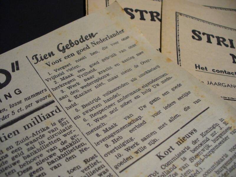 Vraag is natuurlijk waarom opeens dit anti Duitse drukwerk? Wat zou er gebeurd zijn? Is Berend benaderd door leden van het verzet? Die in hem natuurlijk een perfecte koerier zagen door zijn bewegingsvrijheid en zijn goede naam bij de bezetter? Of heeft hij zelf eieren voor zijn geld gekozen nu het duidelijk werd dat de Duitsers de oorlog niet zouden winnen. De geallieerden hadden op dat moment namelijk al een groot deel van Nederland bevrijd. Heeft hij de exemplaren zelf van A. naar B. gebracht? Of heeft hij ze misschien bewust verzameld om tegen de tijd van de bevrijding een alibi te hebben voor vaderlandse trouw? We kunnen het hem zelf helaas niet meer vragen. Feit is dat Berend ruim een half jaar aan verboden drukwerk en Vliegende Hollanders in bezit had. Drukwerk die je na het lezen zo snel mogelijk weer kwijt wilde of door moest geven.